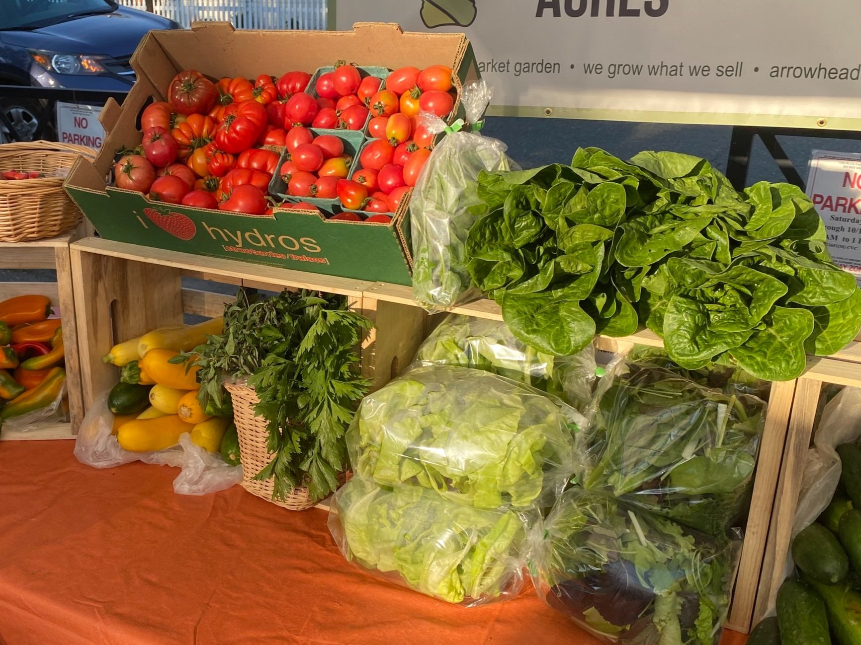 The fruits and vegetables we sell at the local Farmers Market are just the things we like to grow and eat ourselves (but we grow too much!) so there’s a a nice variety to choose from. In recent years, we’ve had melons, pumpkins, onions, garlic, heirloom tomatoes, cherry tomatoes, sauce/slicing tomatoes, hot peppers, sweet peppers, carrots, corn, apples, and more.